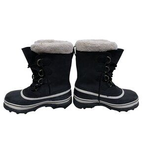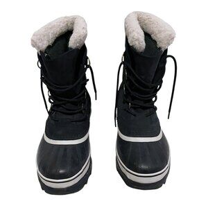 Sorel Caribou Snow Boots 7 Waterproof Insulated Rubber Faux Fur Black Stone