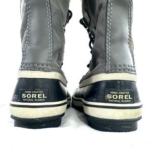 Are you looking for a winter boot that's not leather? This Sorel Carnival women's size 8 gray canvas winter snow boot NL1495035 is lined in wool for extra warmth and the foot is waterproof. It laces up for easy on and off. Sole is slip resistant. Very good condition. Minimal normal wear. Some spots around. Scuff marks around bottom (see last pic). Normal sole wear. This is a pre-owned item and may have fading or discoloration, marks or stains, scratches, wrinkling, wear on straps, corners, trim and texture. If this is an issue, buyers should purchase items brand new.