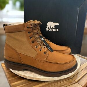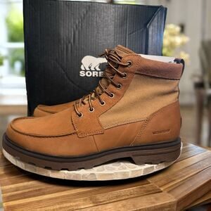 Sorel Carson Moc WP Waterproof Boots Leather Camel Brown Umber Men’s 11