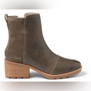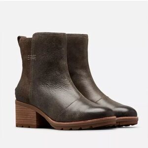 Sorel Cate Bootie Ankle Boot Leather Block Heel Major Brown. 7
