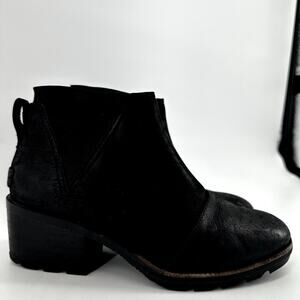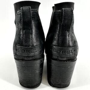 Sorel Cate Boots Chelsea Ankle Waterproof Leather Block Heel Slip On Black 7