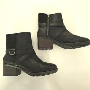 Sorel Cate Buckle Waterproof Leather Lug Sole Chunky Moto Ankle Bootie, Size 8.5