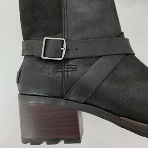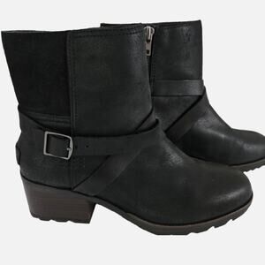 Sorel Cate Buckle Waterproof Leather Lug Sole Chunky Moto Ankle Bootie, Size 8.5