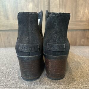 Stylish, black, gently used, ankle boots. Textured leather with a sturdy heel. Perfect for any occasion.