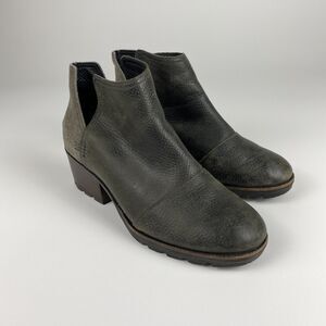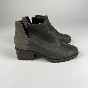 Sorel Cate Cut-Out Boot Womens 8.5 Waterproof Gray Leather Heel Bootie Grunge