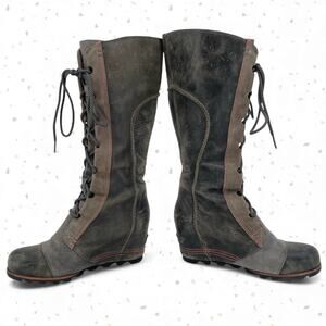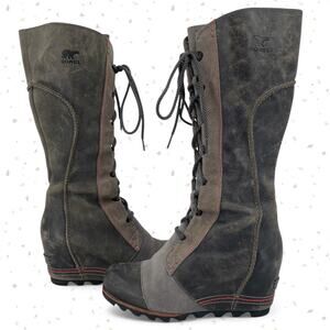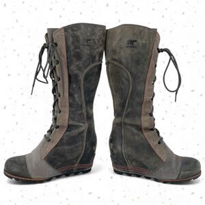 Sorel Cate The Great Wedge Charcoal Gray Tall Leather Suede Lace Up Boots Size 9