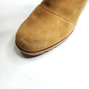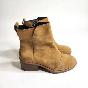 Sorel Cate Waterproof Suede Block Heel Bootie Side Zip Size 7 Camel Brown