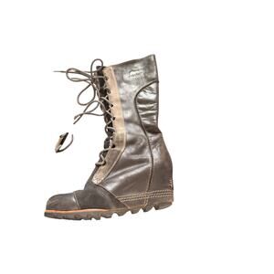 Sorel Cate the Great Boots Gray Wedge Suede Knee High Lace Up Casual Size 7