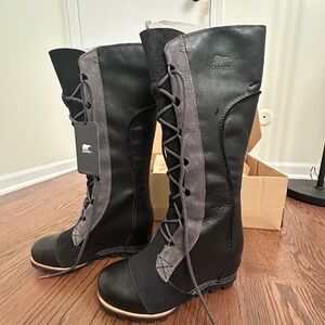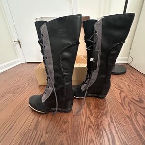 Sorel Cate the Great Wedge Waterproof Tall Boots – Black, Size 8 (Minor Flaws)
