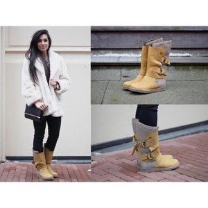 Super warm Sorel winter boots, worn but in great condition, no tear etc. (see pics) they are great for winter with leggings or pants, the style pic is a different color, just to show the boots height.