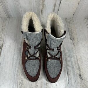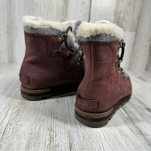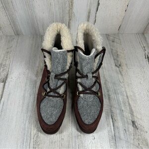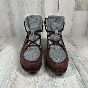 Sorel Classic Sneakchic Alpine Leather Boots Shearling Accents Brown Gray #1180