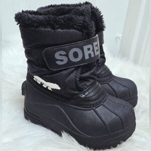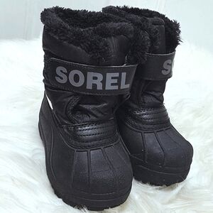 Sorel Commander Black Faux Fur Kids Winter Boots. Toddlers Size 7🌴