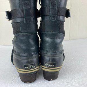 Sorel Conquest Carly Womens Sz 9.5 Leather Lace Up Winter Boots Black