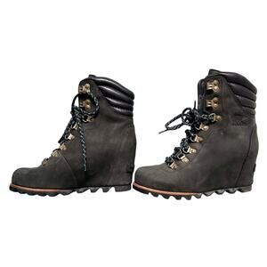 Sorel Conquest Wedge Black Leather Boots Bootie Womens Size 6