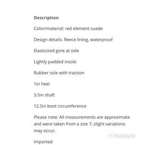 Waterproof suede and canvas upper. Waterproof breathable membrane construction. Microfleece lining