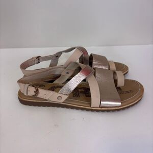 Sorel Cream with Silver Shimmer Leather Strappy Flat Sandals Women's 7