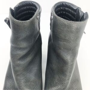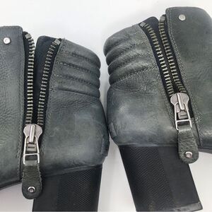 Sorel DANICA Gray Leather Zip Side Block Heel Chunky Moto Style Ankle Boots