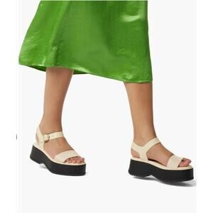 Sorel Dayspring Platform Sandals Size 10.5 Honey White Black Leather Ankle Strap
