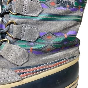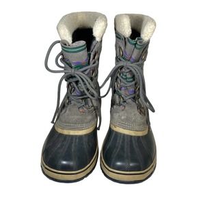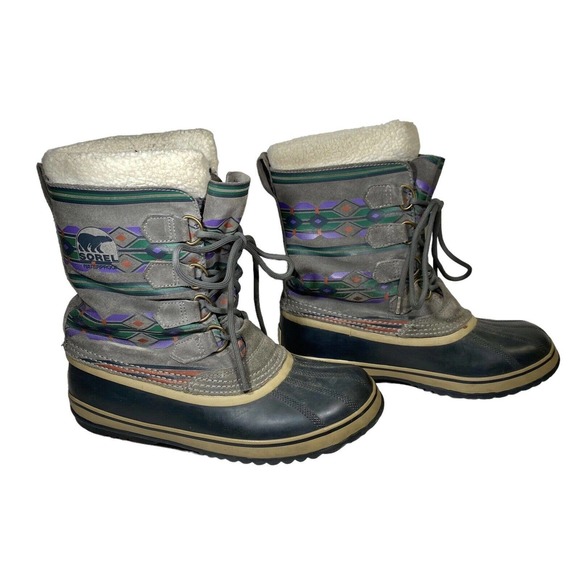 Sorel Duck Boots Women Aztec Winter Waterproof Lined Insulated Sz 10 Gray.