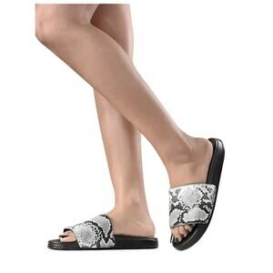 Sorel Ella II Animal/Snake Block Slide Sandals Womens Black/Silver US9.5 EU40.5