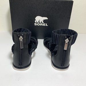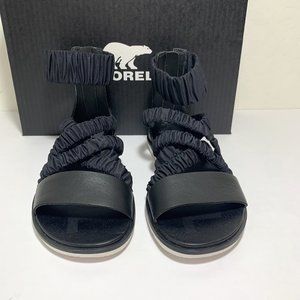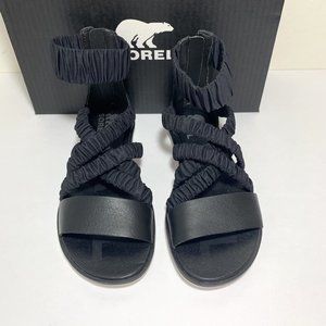 NEW Sorel Ella II Ankle Strap Sandals Leather Flats Black Size 7 NIB
