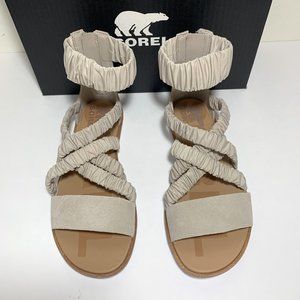 Sorel Ella II Ankle Strap Sandals Leather Flats Soft Taupe Size 9 NEW