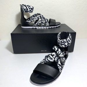 NEW Sorel Ella II Ankle Strap Sandals Leather Flats White & Black Print Size 5.5 NIB