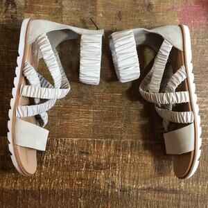 Sorel Ella II Crossover Sandal Tan Womens 10 Leather Strap Flat Gladiator Ruched