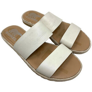 Sorel Ella II Ivory Leather Two Banded Slide Sandals Flats Women's Sz 6.5