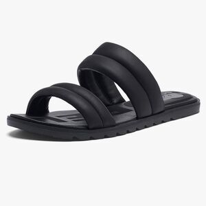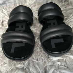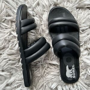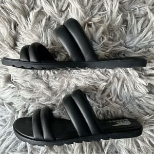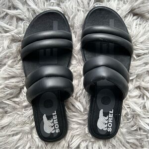 Sorel Ella II Puff Black Leather Slide Sandals women’s shoe size 9