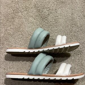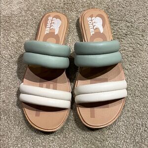 Sorel Ella II Puff Slide sandals green and white size 9.5