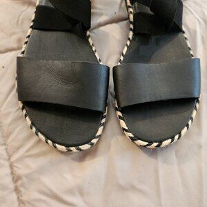 Sorel Ella II Sandal Ankle Cross Strap Strappy Espadrille Flat Black