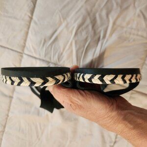 Wedge covered in raffia/jute in tan and black