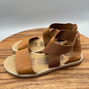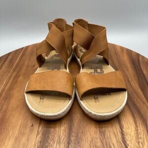Sorel Ella II Sandals Tan Leather Elastic Strap Espadrilles Casual Comfort Shoes