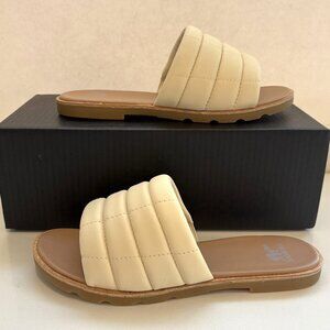 NEW Sorel Ella III Slide Sandals Quilted Leather Slip On Flats Honey White Size 8.5 NIB
