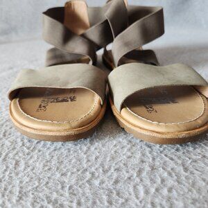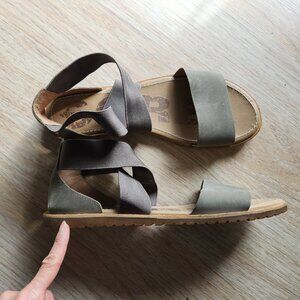 Sorel Ella Leather Gore Stretch Strap Sporty Sandal Comfortable Sage Green