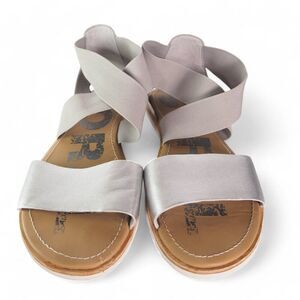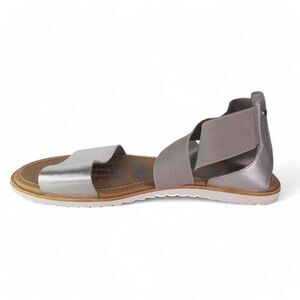 Sorel Ella Leather Open Toe Flat Strappy Sandals Silver NL3202-034 Women's 9.5