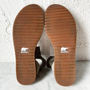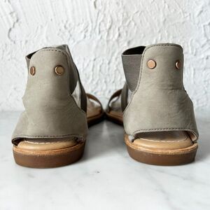 Sorel women's size 8.5 Ella sandals. Olive green leather strap and heel counter with elastic straps. Leather insole, rubber sole. Excellent condition--only worn once!.