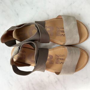 Sorel Ella Olive Green Leather/Elastic Strap Sandals - Women's Size 8.5