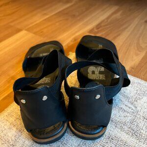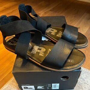 Beautiful and extremely comfortable flat sandal – wonderful for summer and warm weather travel! Heel and forefoot strap are full grain leather with gore straps across the midfoot and ankle (slip-on).