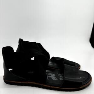 Sorel Ella Sandals Full Grain Leather Gladiator Slip On Flat Black 7.5