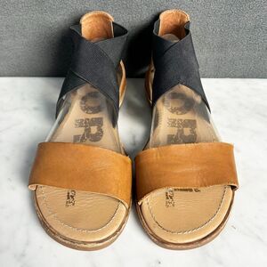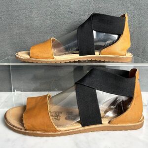 Sorel Ella Tan Leather Black Elastic Strap Sandal - Women's 8.5
