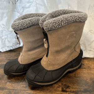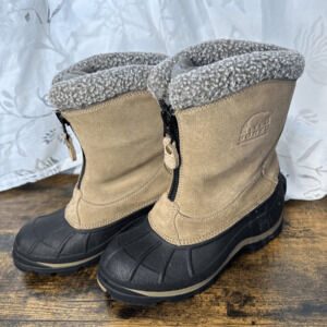 Sorel Ellesmere Winter Boots Women US 6 Tan And Black Leather Duck Boot
