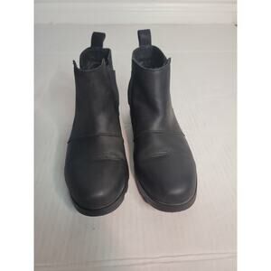 Sorel Emelie Ankle Boots Womens SZ 9 Black Leather Chelsea Pull On NL2671-010
