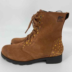 Sorel Emelie Boots Waterproof Leather Combat Shimmer Stars Tan Girl's Si…