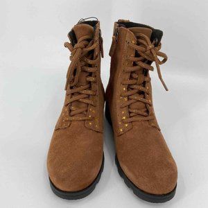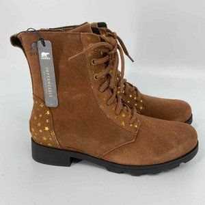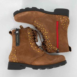 Brand New Sorel Emelie Boots Waterproof Leather Combat Shimmer Stars Tan Girl's Size 5 M.