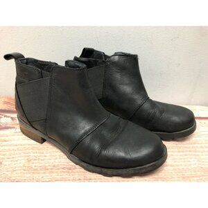 Sorel Emelie Chelsea Black Leather Boots NL2671-010 Womens 8 / 39 (w8e)