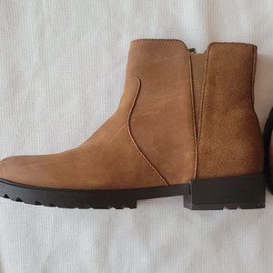 I bought NEW on Poshmark. Paid $175. Loosing big time! Delivered in the box, threw the box away. I have a lot of Sorel Boots, but they are the kind of boots that you can wear thick wooly socks with. These boots need either no socks or thin socks. These felt too loosy goosy on me. I never wore them. Just put them in the closet. Then I decided to go a different direction. These are zipped on the outside, not like most boots which are zipped on the inside. All pictures are of the boots for sale. They are supposed to be 2-tone, but there is not enough definition to easily discern. The toes are darker. The first picture is the most accurate color. Fully waterproof leather/suede combination with seam-sealed waterproof construction. The zipper is not waterproof. No tags. Scuffs, some were on the boots when I received, but others came about just by being moved around my closet. Ask any questions.