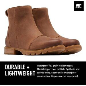 Sorel Emelie III Zip Waterproof Booties leather zip Women's new Tan