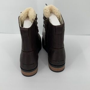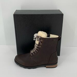 Sorel Emelie Short Lace Cozy Boots brown leather shearling winter waterproof 9